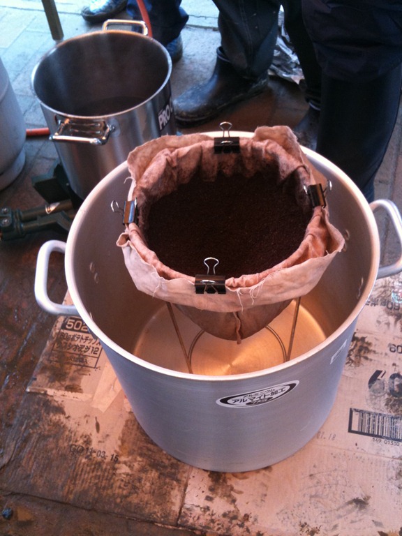湊小ではコーヒー部隊が別途許可をもらってブースを設営し、避難所の昼食に合わせて入れたてネルドリップコーヒーを提供。お昼時はぼちぼちと、でも午後になるにつれ続々と利用者が現れどんどんコーヒーを淹れて配っていた。kajikuniさんがサンパウロコーヒーまで出向いて習得した淹れ方に興味津々の子供たちが集まったりして和やかな雰囲気。アツいコーヒーでほっとしてもらう目的もどんぴしゃり。
