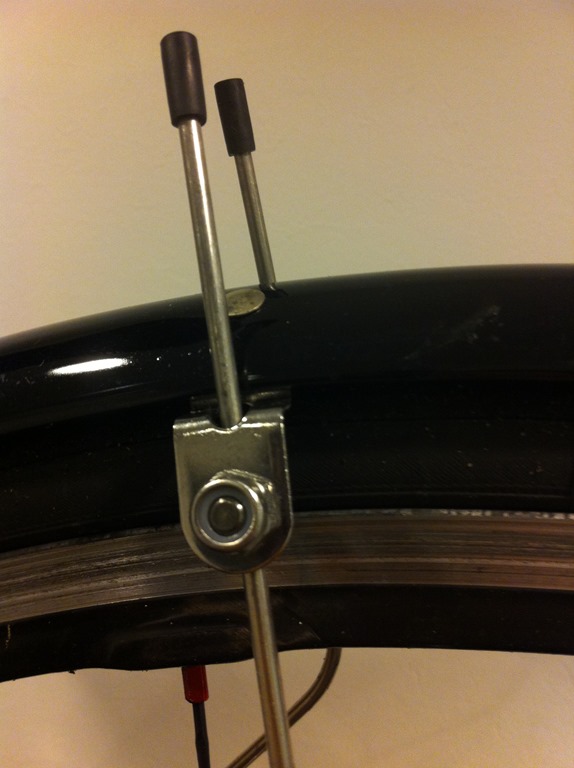 仕組み的には Road Bladeとまったく同じで、シートステイにゴムバンドで固定して、位置調整はナットで。最初の位置決めをしっかりやってしまえば、あとはいつでも簡単に取り付け取り外しOK。Road Bladeよりカッチリ決まる感じ。これ、けっこう使ってる人多いですね。