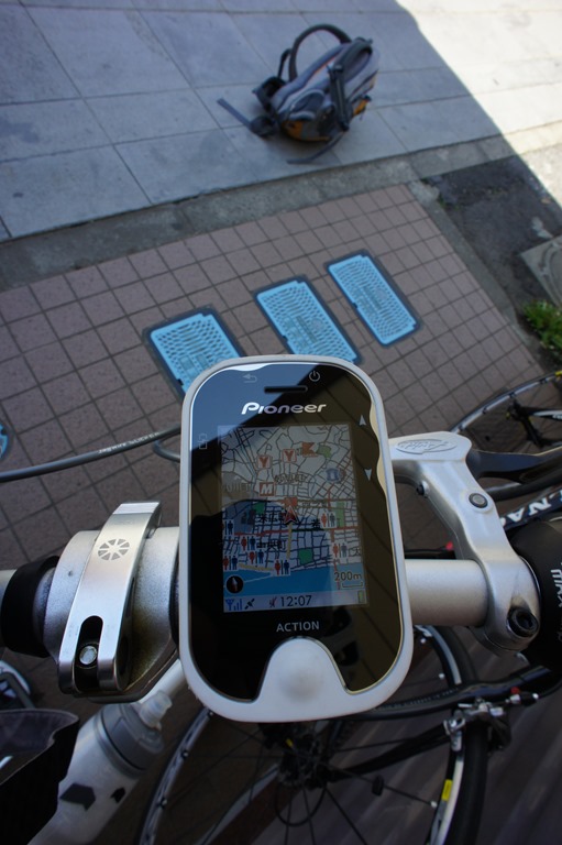 ポタリングだよ~ということで奥様DAHON Mu-P8號を借りてポタナビを装着。初めてルート連携する機能を使ってみたけど便利!サイトでルートを設定(ルートラボで教えてもらったルートをtcxでダウンロードして、ポタナビのサイト(CycleLab)でアップロードするだけ)して、あとはそれをポタナビに転送する用に設定すると、勝手に同期してくれる。
