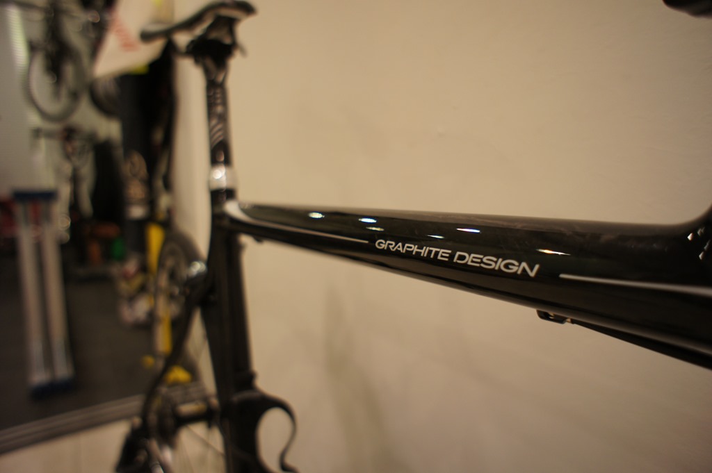 デザイナー雇う予算がなかったんだろうか、というくらい飾り気ナシwこれはこれで自転車屋さんに置いてあったら逆に目立つレベル。ちなみに僕はもともと黒が大好きで、これまで乗ってきた自転車はCXのCRUXを除いて全て黒もしくはダークグレーなので、これはこれでアリ。むしろあまりに何もないので、自分であれこれカラーパーツでカスタムしても変にバッティングすることがほとんどないので、今の自分の乗り方としてはそこも選択ポイントだったりしたのだけど。