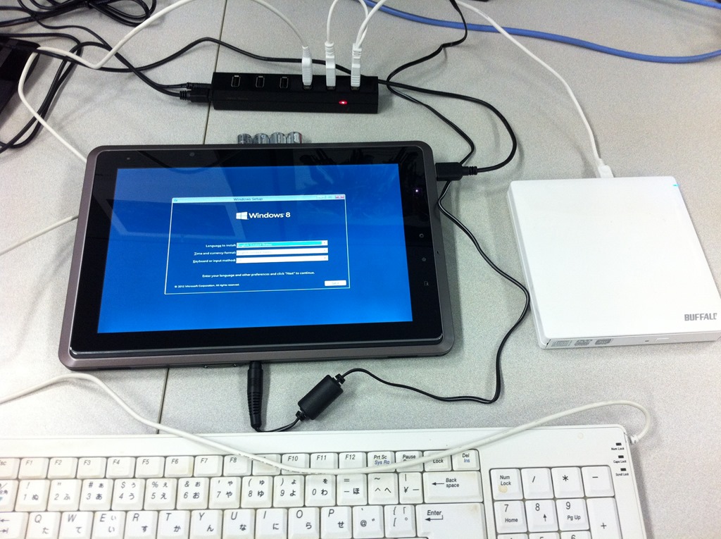 もともとWindows 7 Tablet なので基本的に Windows 8 との相性も抜群であります。今回は DVD からインストールも、MSDN から落とした ISO イメージを USBメモリーにしたインストールも両方試してみたけど、USB メモリーが最初からあるなら作っておくとほかの人の役に立ちます。と、いうのもセットアップ自体は USB のが読み込み速度で速いんだけど、USB メモリーの中にブートイメージを作るのに多少時間がかかるので、結果トータル時間はとんとんかな、という意味で。もちろんこれもれっきとした犬飯喰らいでございますので、何度でもインストールしてやるぜ!という気概に満ち溢れた皆さんのことですから、USBメモリーを用意しておいて損なことは一つもありません。]
