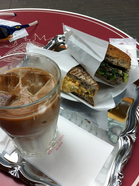 やたらと短時間しか走ってないような気もするのだけど、気持ち満足したのでお茶しにニコタマまで移動。土曜日なら狛江のHORIGUCHIに行くところだけど、日曜定休なのよね。代わりにニコタマの駅のショッピングモールのオサレなカフェにてパニーニを頬張る。たまりませんな~。